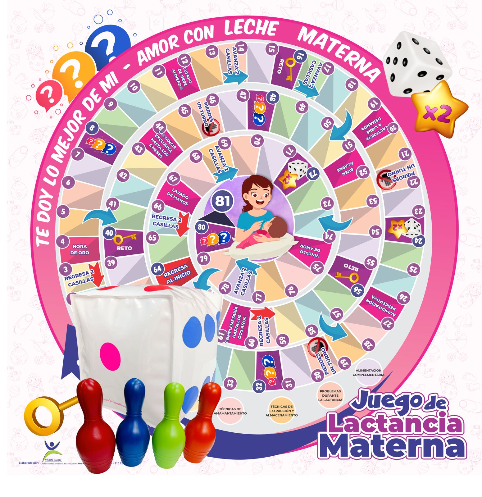 • 🎲 Juego educativo “Aprendo a darle lo mejor de mi con leche materna” (tablero de 2,4 m x 2,4 m): Potente herramienta lúdica y emocional.
