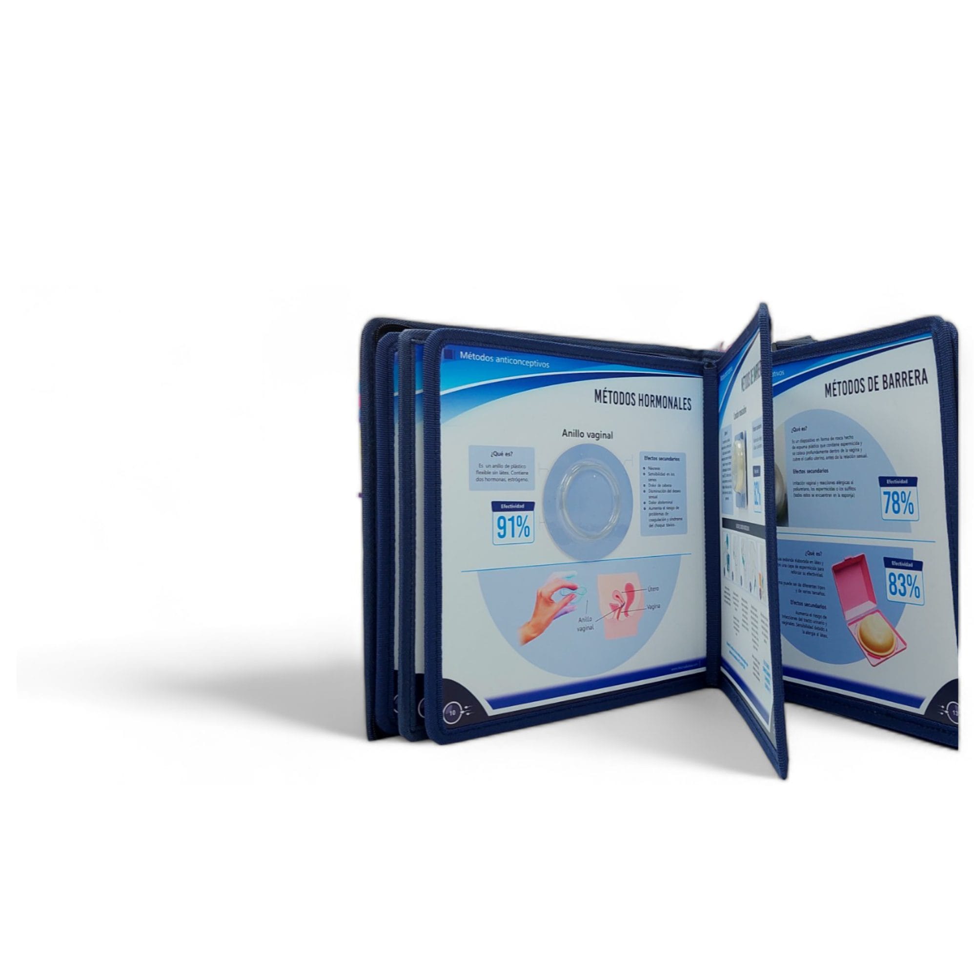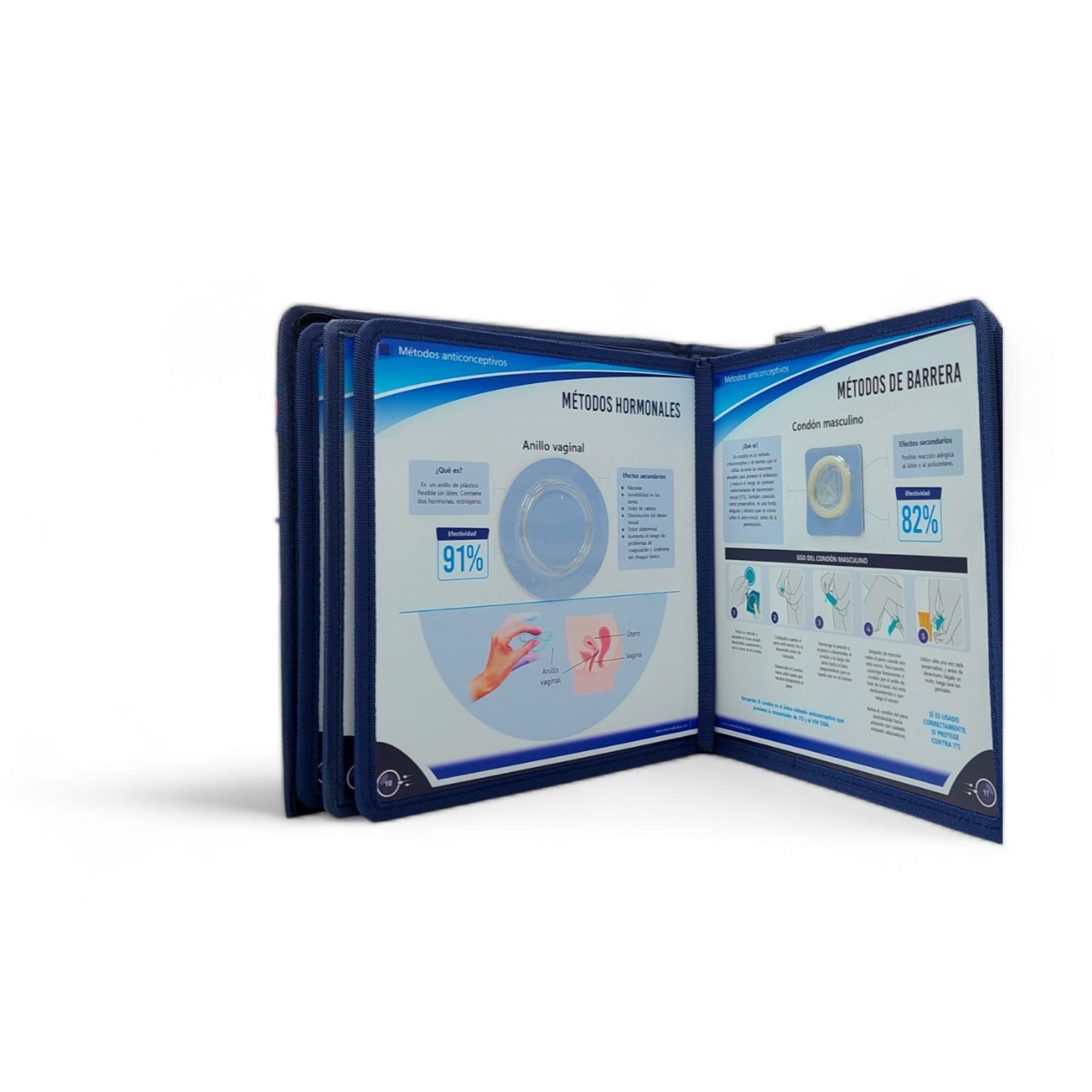 El Libro Maletín de Métodos Anticonceptivos es una solución innovadora diseñada para profesionales de la salud, educadores y promotores comunitarios que buscan enseñar con claridad, impactar visualmente y facilitar la toma de decisiones informadas.